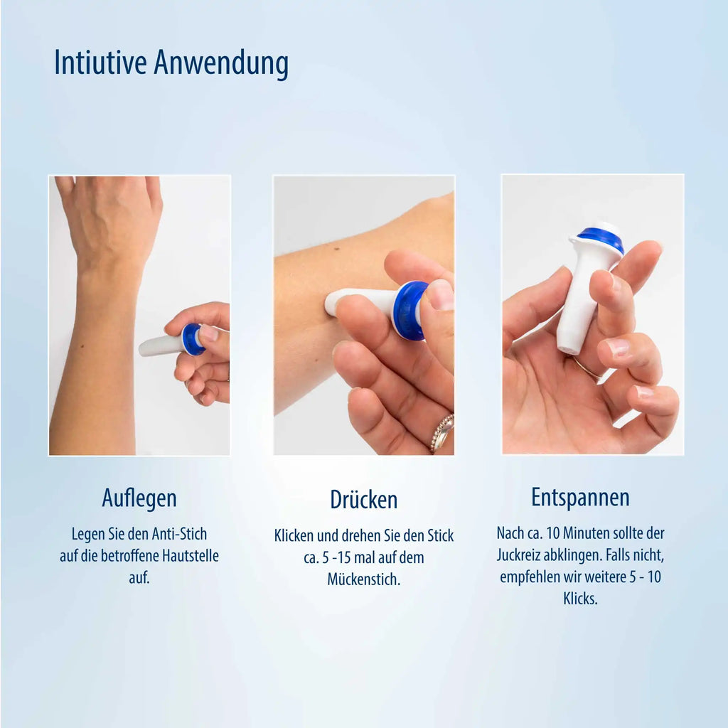 Verwenden Sie den Anti-Stich sobald wie Möglich nach dem Stich oder sobald Sie einen Juckreiz verspüren.
