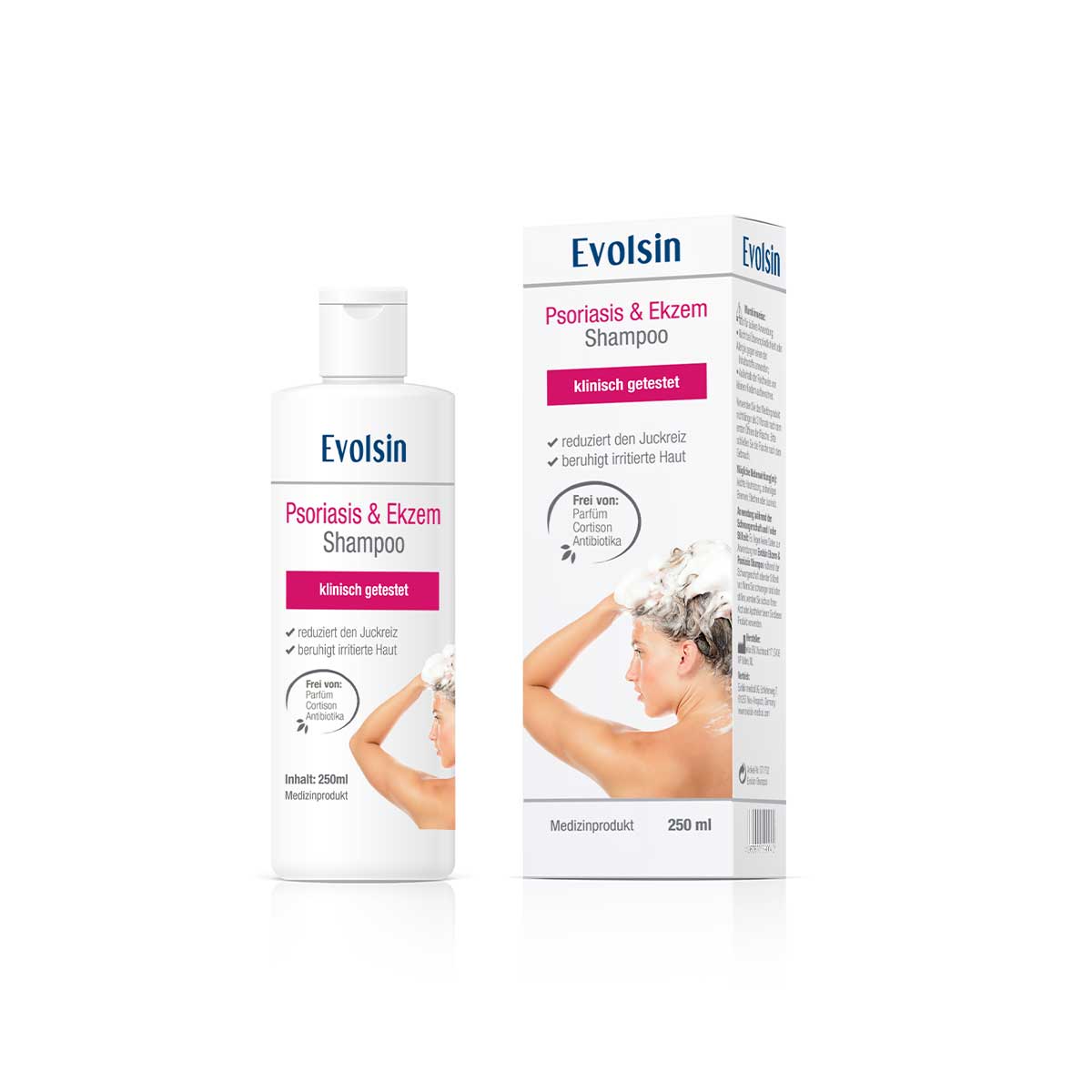 Zum Produkt | Evolsin® Psoriasis Schuppenflechte Balsam | Evolsin® Ekzem & Psoriasis Shampoo | Behrend Schuppenflechte & Neurodermitis Creme |