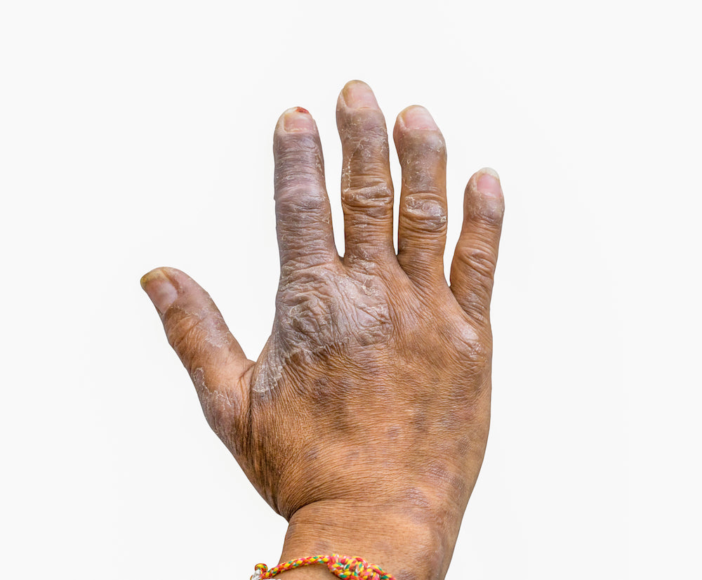 PUSTOLOSA: Diese seltene Form von Schuppenflechte zeigt sich als pustulöse (mit Eiter gefüllte Bläschen) Läsionen auf der Haut, die von roter und entzündeter Haut umgeben sind. Es kann an verschiedenen Stellen des Körpers auftreten und schwere Symptome wie Fieber und allgemeines Unwohlsein verursachen.