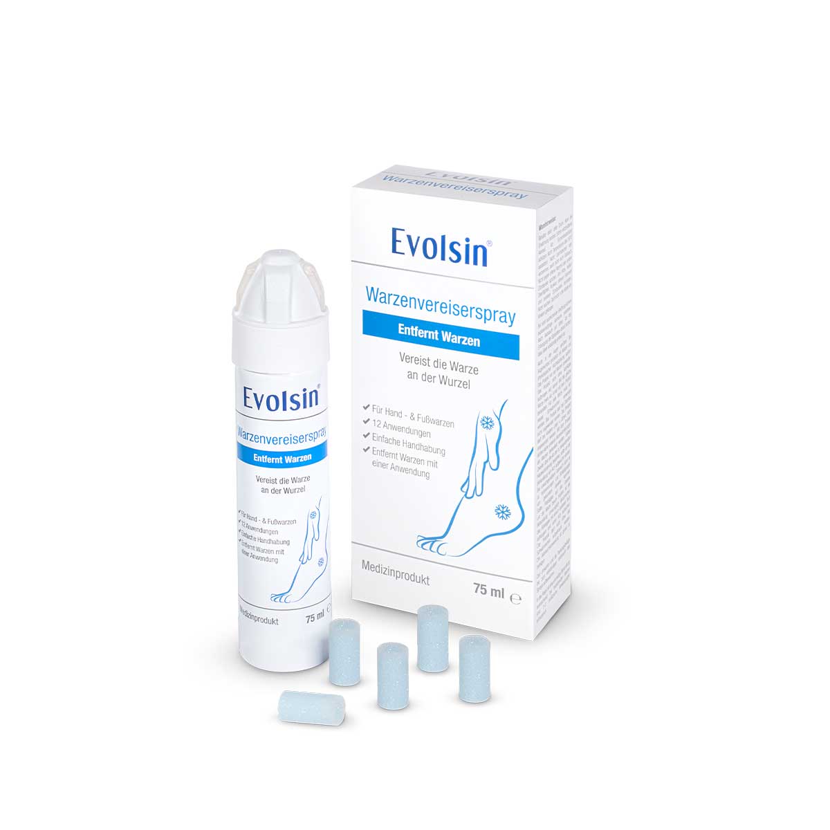 Zum Produkt | Evolsin® Warzenvereiserspray | Evolsin® Anti Warzen Stift | Behrend Warzenentferner |
