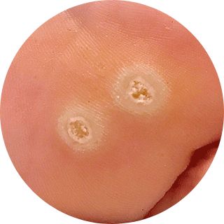 - Warzen an spezifischen Stellen: Es gibt verschiedene Arten von Warzen, die an unterschiedlichen Körperstellen auftreten können. Zum Beispiel treten gewöhnliche Warzen oft an den Händen, Fingern oder um die Nägel herum auf, Fußwarzen auf der Fußsohle und Dellwarzen an verschiedenen Körperstellen, vor allem bei Kindern.