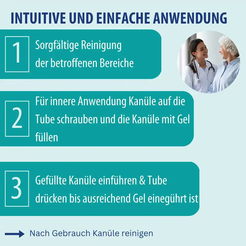 Das Behrend Homecare Hämorrhoiden Gel sollte vorzugsweise nach dem Stuhlgang 2-3x täglich angewendet werden.